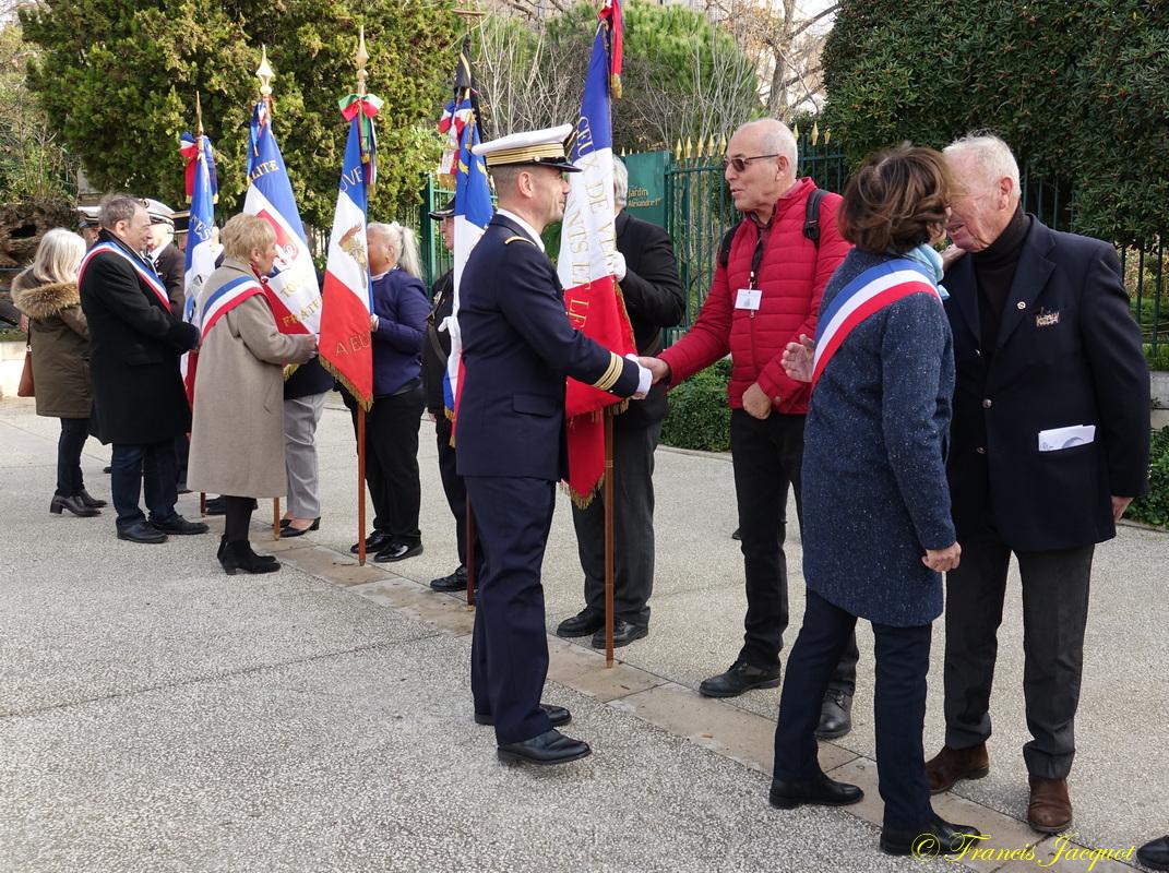 Ce mardi, cérémonie du 107ème anniversaire de l'Armistice du 11 novembre 1918. Le secrétaire et une adhérente, Mme Sheirmann-Descamps de l'Amicale RUBIS ont déposé une gerbe au monument aux Morts, place Gabriel Péri à Toulon.